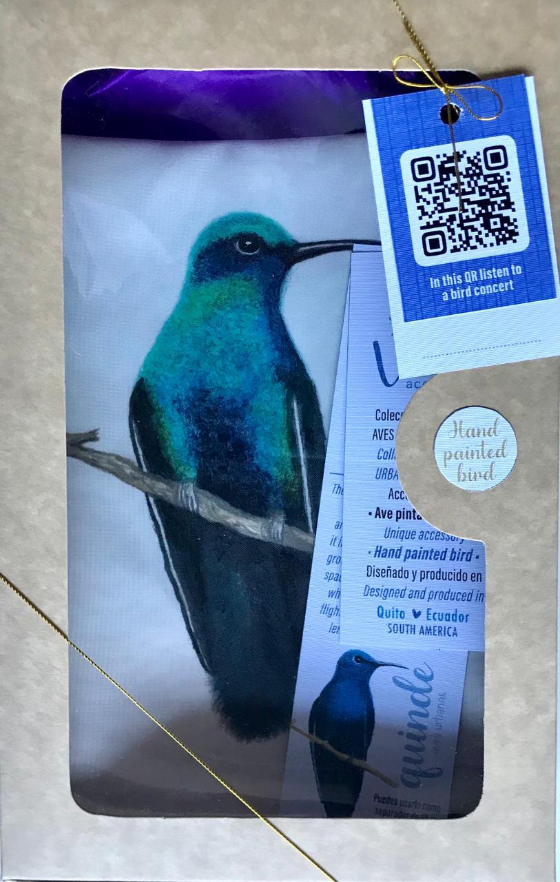 El Quinde herrero tiene un plumaje de coloración verde metálico y violeta. Es común verlo dentro